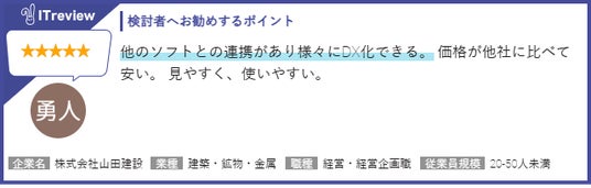 「ITreview」とは、アイティクラウド株式会社(本社:東京都港区、代表取締役社長:黒野 源太)が運営する法人向けIT製品・クラウドサービスの利用者が集まる国内最大級ITレビューサイトです。投稿されたレビューをもとに四半期に一度ユーザーに支持された製品を「ITreview Grid Award」 で表彰しています。