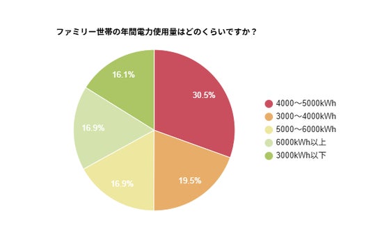 ファミリー世帯の3割が年間電力使用量「4000~5000kWh」と回答
