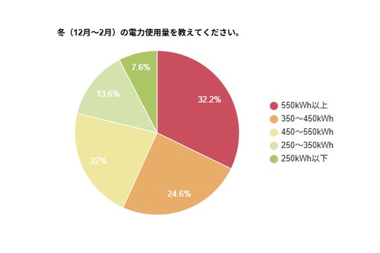 ファミリー世帯は32.2%が冬の電力使用量「550kWh以上」