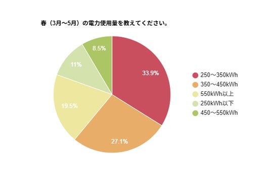 - ファミリー世帯の33.9%が春の電力使用量「250~350kWh」