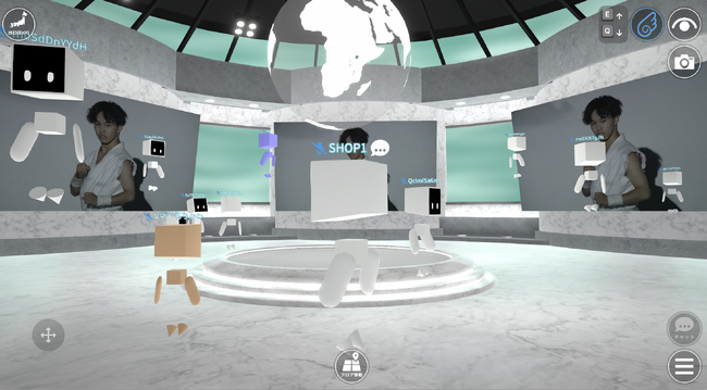 専用アプリのダウンロードがいらず、ブラウザから簡単にアクセスできるメタバース3D空間です。メタバース空間内では、自分のアバターを操作しながらEC機能や音声通話機能、チャット機能、翻訳機能で世界中のユーザーとコミュニケーションを取りながらお買い物やライブ配信を楽しむことができます。