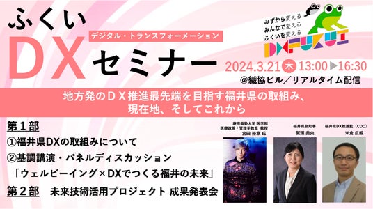ReGACY Innovation Group株式会社(本社:東京都千代田区、代表取締役:成瀬 功一、以下:ReGACY)が事務局を務める福井県のDX推進事業「CO-FUKUI 未来技術活用プロジェクト」は、福井県内の事業者・自治体・団体等にデジタル技術を実装し、地域課題の解決に取り組むプロジェクトです。本プロジェクトの2023年度プログラムの成果発表会であるデモデイを、「ふくいDXセミナー」の第2部として実施します。
