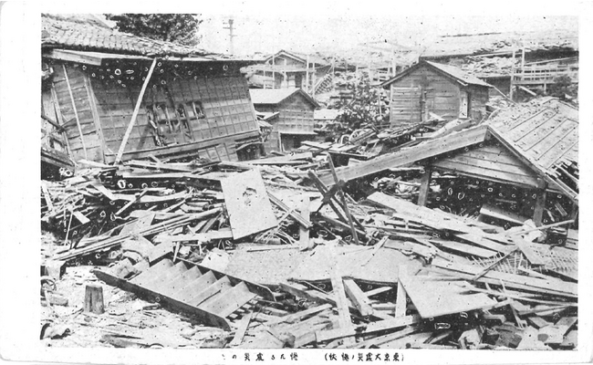 ことしは、1923(大正12)年の関東大震災から100年にあたります。市内に残る当時の人々の体験や役場の対応の記録を展示するとともに、旧上福岡市史編纂事業で、地震研究の第一人者である角田史雄さんが市内の建造物に残した震災の爪あとについて検証した成果を紹介します。震災の影響について検討することは、将来の防災を考える上でおおいに参考になるものと考え、ふじみ野市内の資料から100年前の震災の実態に迫ります。