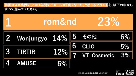 “国民的ティント”でお馴染みの『rom&nd』が1位!プロデューサーの顔が見える『Wonjungyo』の躍進も目立つ結果に。