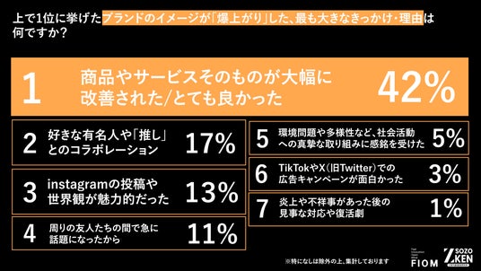 「イメージ爆上げの理由は、推しとのコラボ(17%)ではなく、商品やサービスの改善(42%)である」。