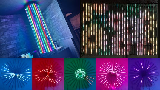 【レインボースティック】はシンプルなスティック型LEDライトです。連結して大きな画面のように映像を映し出すことで、従来のテープライトでは表現できなかったアニメーション演出を実現します。