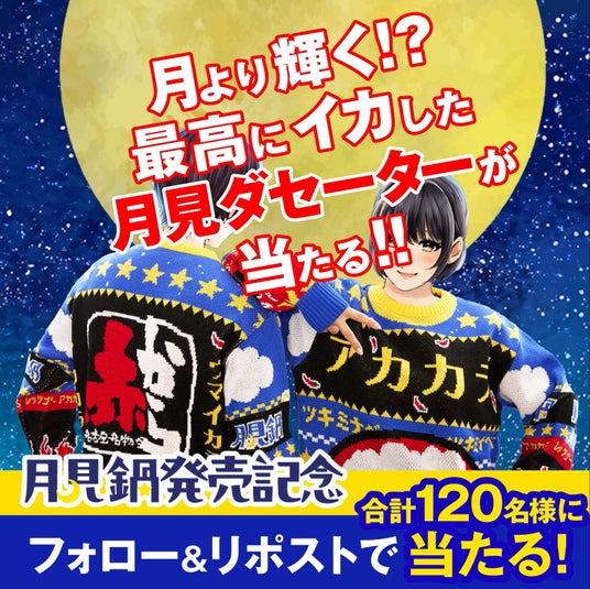 \ 緊急告知 /赤から公式Xフォロー&リポストで「月見ダセーター」が10名に当たる!