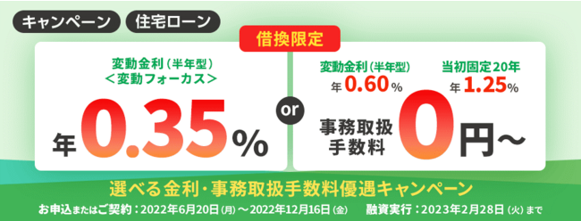 ・お申込またはご契約を2022/6/20~2022/12/16、ご融資実行を2023/2/28までに行うこと。