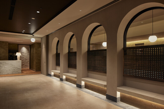 お客様は“門”をくぐり、KINTANのカルチャーを体験します。“門”は福岡と東京を繋ぎ、商業施設の密閉された空間を開放的にします。