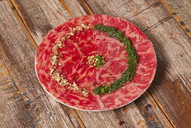 提供するお肉は、KINTANが長く信頼を置く食肉仲卸業者により、全国各地から優れた銘柄牛が集まる芝浦市場で買い付けされます。確かな目で買い付けされたA5ランク仙台牛をメインに地元の宮崎牛などを使い、和牛の違いをお楽しみいただけます。さらに福岡の皆様に、より親しみを持っていただけるよう九州の食材を使用した福岡店限定メニューを開発いたしました。焼肉KINTANを代表するメニューの“サーロイン・ユッケハーフ&ハーフ(TM)”は自家製の醤油ダレとネギ塩ダレの2種類の味が楽しめるユッケです。自家製醤油ダレのユッケには、食感のアクセントに福岡銘菓の二○加煎餅を使用。サクサクした歯ざわりと卵の風味がタレを調和し、サーロインの旨味を引き立てます。ネギ塩ダレのユッケには糸島ねぎを使用。熱い油をかけて糸島ねぎの香りを引き立てることで、サーロイン・ユッケを最後までさっぱりとお召し上がりいただけます。その他、焼肉KINTANで人気の“クリームチーズキムチ”をアレンジした“めんたいクリームチーズキムチ”や“宮崎牛ミスジの炙り握り”、KINTANが手掛ける表参道の人気カフェ〈CBC〉から“福岡県産あまおうのアイスサンド”など9種の福岡店限定メニューが新登場いたします。さらに期間限定で福岡店限定メニューを含む「福岡焼肉kintanオープン記念コース」を特別価格の8,980円にて販売いたします。