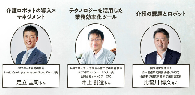 内容:これからの介護とテクノロジーとの向き合いかたをテーマに、介護現場におけるDX推進をサポート。介護テクノロジー分野の有識者3名が登場し、生産性向上のための具体的な方法などをご紹介します。