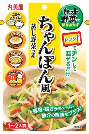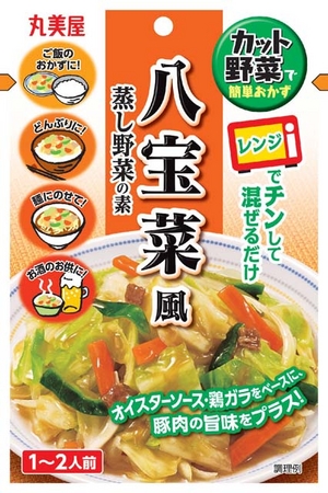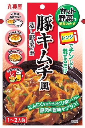 丸美屋食品工業株式会社(本社:東京都杉並区、社長:阿部豊太郎)では、カット野菜(加熱調理用)を電子レンジで加熱後、本品と混ぜるだけでごはんのおかずが出来上がる「カット野菜で簡単おかず<ちゃんぽん風>」「カット野菜で簡単おかず<八宝菜風>」「カット野菜で簡単おかず<豚キムチ風>」を2015年2月19日(木)から全国で新発売いたします。