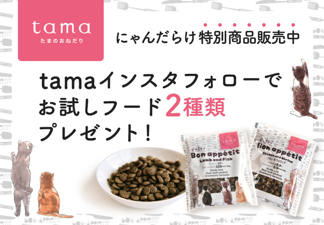 tamaのインスタグラムフォローの方に【ボナペティ(50g)2種類+クーポン券】を先着でプレゼント