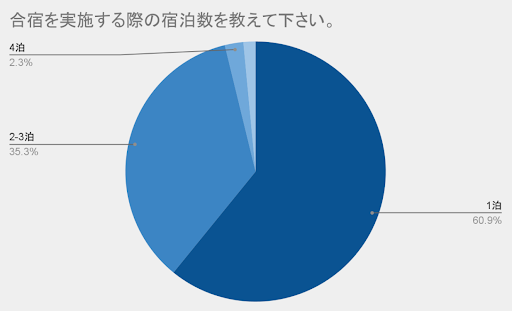 ・合宿を実施するチームの宿泊数は「1泊」が最も多い