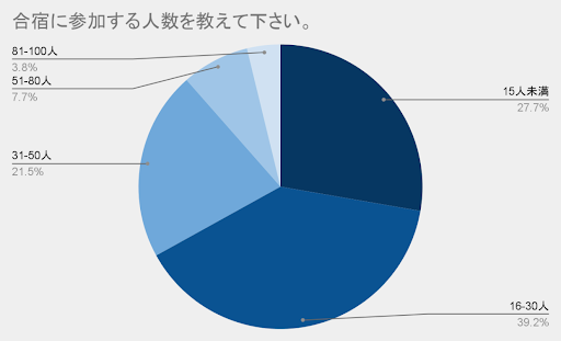 ・合宿に参加する人数は「16~30人/1チーム」の割合が最も多い