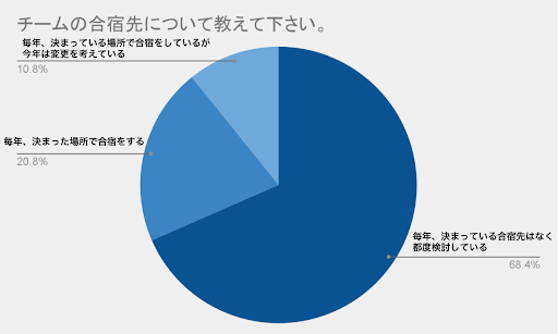 合宿先に関しては、 約7割以上のチームが都度探しており、比較検討していることがわかった。