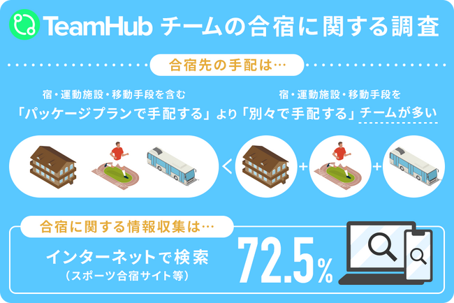 ・合宿先を手配する際は、パッケージプラン(宿・運動施設・移動手段を含む)で手配するより、「宿・運動施設・移動手段を別々で手配する」チームが多い