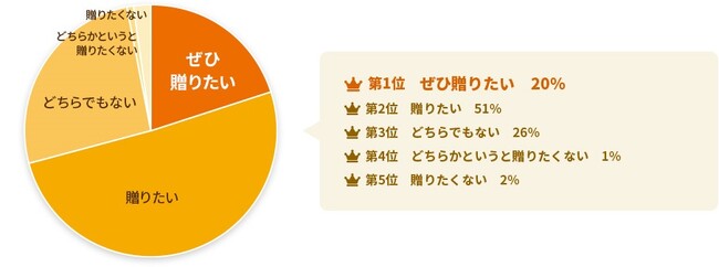問4:環境に配慮されたプレゼントを贈りたいですか?「ぜひ贈りたい」「贈りたい」を合わせて71%が、環境に配慮されたプレゼントを贈りたいと回答しました。サスティナブルやSDGsという言葉が一般化してきた近年では、母の日のプレゼントも地球環境に配慮されたものを選びたいと思う方が多いようです。