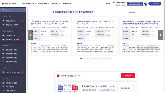 2018年4月に開始した、「M&Aクラウド」は、求人広告型M&Aプラットフォームです。買い手企業は「求人ポータルサイト」のようにWeb上へM&A方針・実績を発信しています。売却検討企業は、買い手企業の情報閲覧および直接売却打診のコンタクトが可能。月間約300件のマッチングを生み出しています。