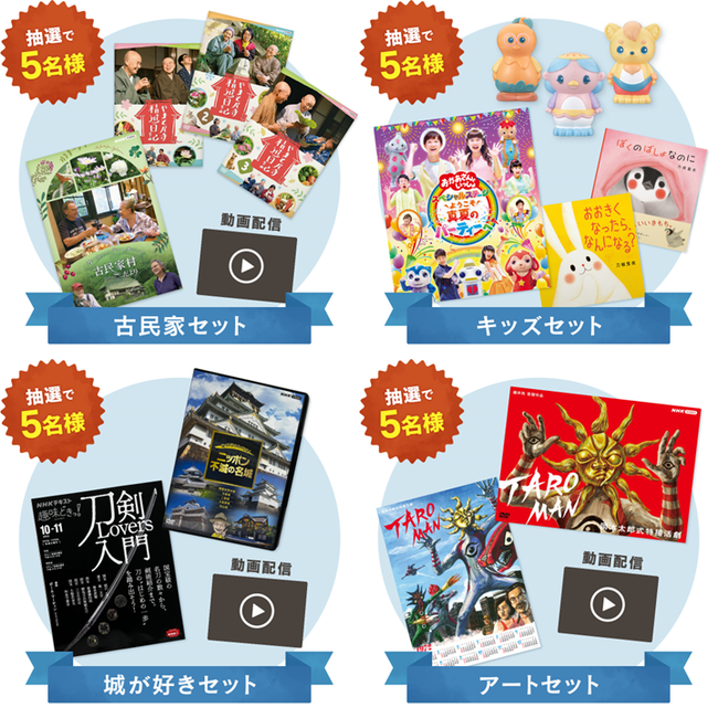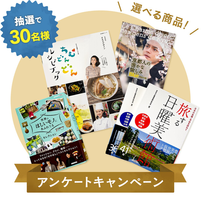 アンケートにご回答いただいた方の中から抽選で30名様にNHKの人気の書物やDVDをプレゼントします。