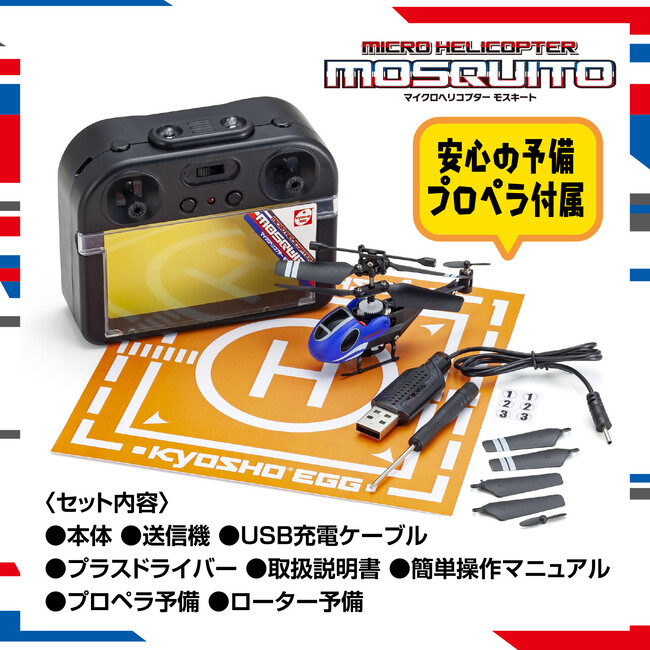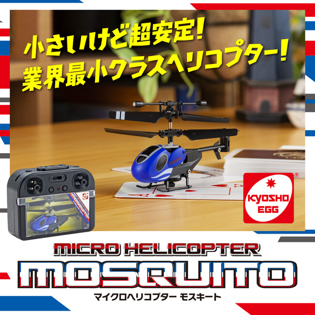 本格R/C(ラジオコントロール)モデルやミニカー等、ホビー製品を製造・販売する京商株式会社(本社:神奈川県厚木市 代表取締役社長:森元 義晴)が、トイレーベルのブランド「京商エッグ」より、指のりサイズの赤外線R/Cマイクロヘリコプター「モスキート」を発売致しました。
