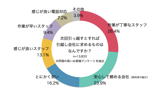例えば「引越しはとにかく安ければ良い」と思われがちですが、実際には「安さよりも信頼や安全」ということが、アンケート結果からわかります。