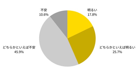 また、ソニー生命が2023年度に実施した「中高生が思い描く将来についての意識調査2023」の調査結果では、中高生がイメージする自身の将来の見通しについてのアンケートで、中高生の意識として自身の将来の見通しについて「10年後は不安」という回答が、中学生では45%、高校生では49%という結果になりました。※4