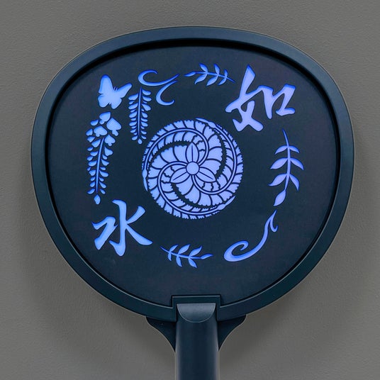 【発光うちわのデザイン例】発光うちわの表面は、切り絵でユーザーがデザインを自由に変えられる。点灯色は10色。