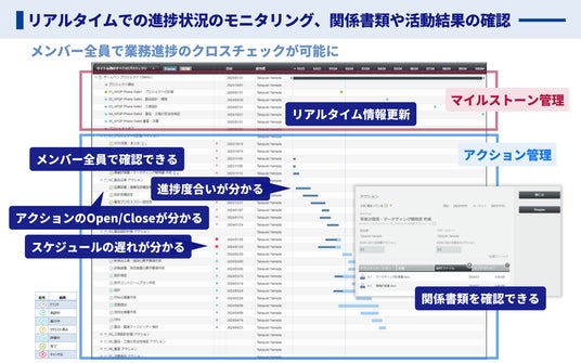 メンバー全員でマイルストーンや、タスク・アクションのワークフローを管理できる