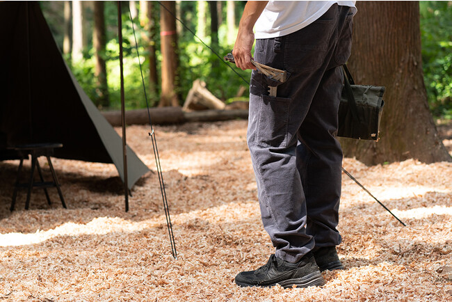 ・ポケット…ペインターパンツのポケット配置をそのまま採用。鍵やキャンプギア等ループに吊るしたものをポケットに入れて落下や紛失の防止に。