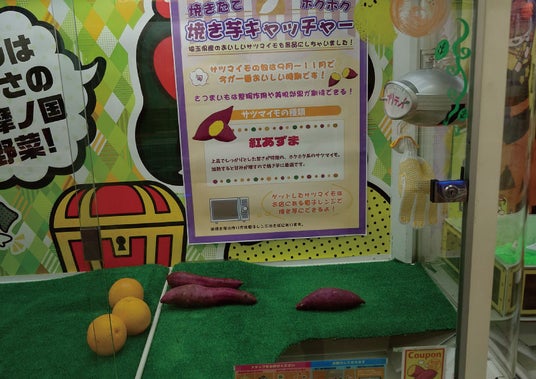 ↑焼き芋キャッチャー この台でゲットしたサツマイモを飲食スペースにある電子レンジを使用することでできたての焼き芋を食べることができます。