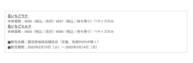 猿田彦珈琲株式会社(本社:渋谷区/代表取締役:大塚朝之)が運営する猿田彦珈琲は、華やかな花の香りに注力した、見た目も香りも楽しめる、春の定番ドリンク「花いちごラテ」と「花いちごミルク」を、2022年2月15日(火)より期間限定で販売いたします。また同日より、春定番のコーヒー「ホワイトキャンディブレンド」も、味わいとパッケージを一新して登場いたします。