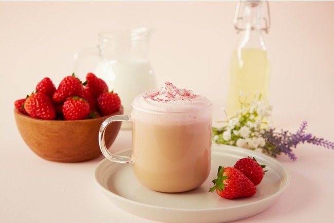 まだ寒さの残る季節を、淡いピンクの春を連想させる『花いちごラテ』『花いちごミルク』とともにお過ごしください。