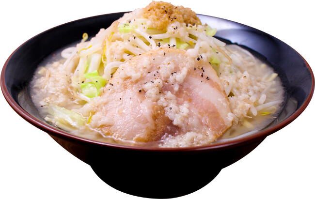 商品概要:家系ベースのスープに野菜と背脂をふんだんに