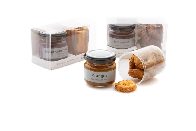 コラボレーション商品第四弾は、コンフィチュール×スペシャルクッキーズのディップセット。スコットランドの家庭で焼かれていたホームメイドクッキーのおいしさを創業以来守り続けている泉屋東京店の “スペシャルクッキーズ”に、日本各地から届けられるフルーツをふんだんに使用して軽井沢で炊き上げたサダハル・アオキ・パリの“コンフィチュール”をディップして2つのブランドのこだわりから生み出される更なるマリアージュをお楽しみください。