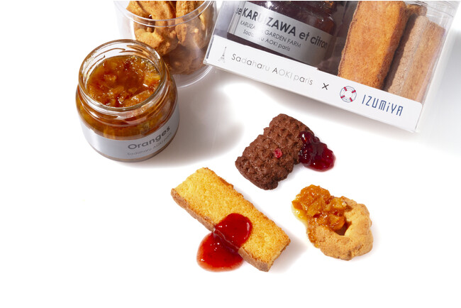 泉屋東京店のスペシャルクッキーズにサダハル・アオキ・パリのコンフィチュールをディップして楽しむアソート。フレーズ カルイザワ エ シトロン×サボイフィンガー、フランボワーズ×チョコレートクッキー、オランジュ×スプライズの3種のセットが登場します。