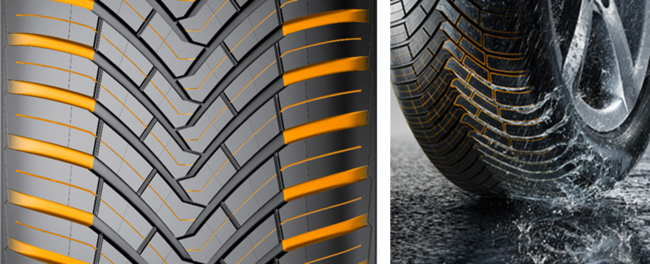 コンチネンタルの「AllSeasonContact」は、四季を通じて気温や突然の天候の変化に対応することで、様々な路面条件下*2)でも安心感をもって走行でき、より高い安全性を確保することを目標に開発されたオールシーズンタイヤです。
