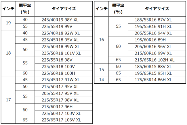 *5) 今回のサイズラインアップには、欧州タイヤラベリングの「燃費性能」で最高グレードの「A」を取得した215/65R16 102H XL が含まれます。