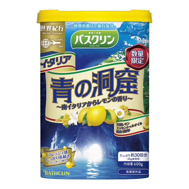 株式会社バスクリン(本社:東京都千代田区 社長:三枚堂正悟)は、“旅情気分を楽しめる”とご好評いただいている「バスクリン世界紀行」シリーズから、「バスクリン世界紀行 イタリア青の洞窟」を2月7日(月曜日)に数量限定の企画品として発売いたします。