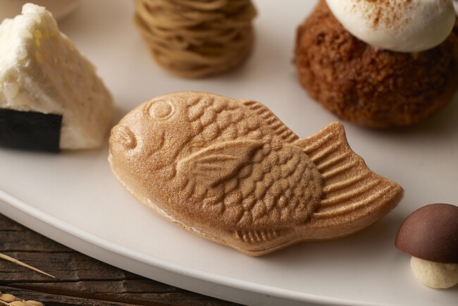 秋に旬を迎える鯛をイメージしたアイスモナカです。鯛の形のモナカに濃厚なさつまいもクリームとバニラパルフェを詰めた遊び心あふれるスイーツです。