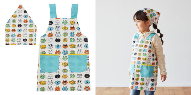 お子さま一人でも簡単にかぶりやすいゴム仕様の三角巾がセットです。