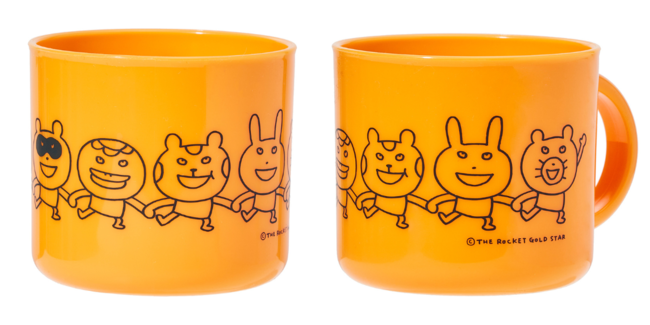 THE ROCKET GOLD STARの6キャラクターが手をつないだイラストは、このコップだけの限定デザインです。