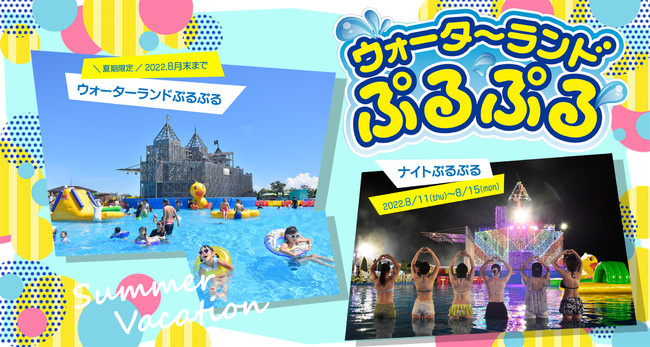 伊豆ぐらんぱる公園内「水と冒険の広場」にて2022年7/16(土)~8月末まで、「ウォーターランドぷるぷる」がオープンいたします。また、2022年8/11(木・祝)~8/15(月)までの期間はラグジュアリーな「ナイトぷるぷる」も登場いたします。