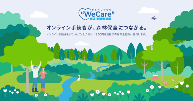 当社はお客さまに電話ではなく、インターネットでお手続きを行っていただき、その利便性を体験いただくこと、またそのアクションを当社が森林保全整備事業に寄付することを目的に、当プロジェクトを実施します。このプロジェクトは、2021年1月に行われた“WeCare”プロジェクトの第2弾となります。
