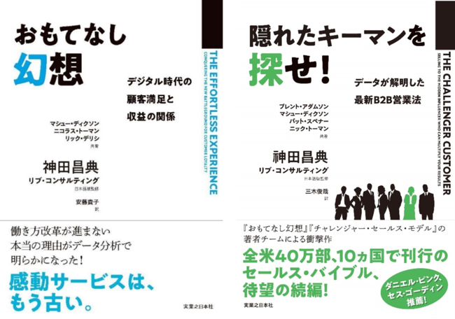 ベンチャー企業や中堅企業など成長企業向けの経営・DXコンサルティングを行う株式会社リブ・コンサルティング(所在地:東京都千代田区、代表取締役:関厳、以下「当社」)は、2018年7月5日に発売した当社アドバイザー神田 昌典との共著監訳の『おもてなし幻想 デジタル時代の顧客満足と収益の関係』が6刷、2018年12月13日に発売した『隠れたキーマンを探せ! データが解明した 最新B2B営業法』の3刷重版が決定しましたことをご報告いたします。