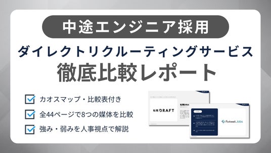 売り手市場の加速により、企業から求職者へ直接アプローチする「ダイレクトリクルーティング」は、今や採用活動のスタンダードとなりつつあります。しかし、新卒採用・エンジニア採用ともにサービスの多様化が進み、「どの媒体が自社に最適かわからない」「各サービスの違いが比較しづらい」といった人事担当者様の声が多く寄せられています。