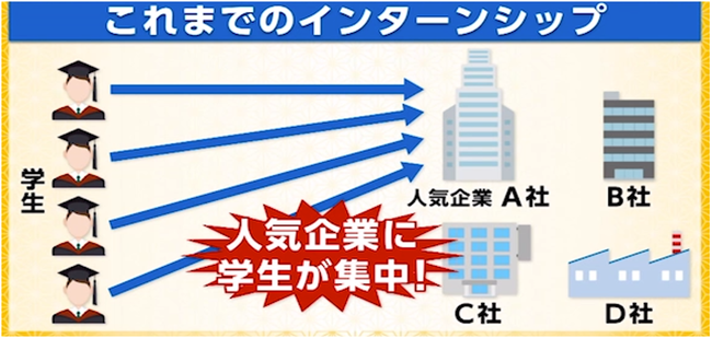 一般的なインターンシップでは、人気な業界や有名な企業に学生が集まってしまうという課題がありました。学生は本当に自分に合った企業を見逃しているかもしれません。