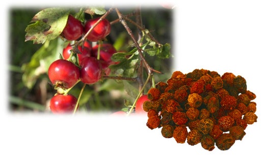 バラ科の落葉低木で、小さな白い花が咲き、赤い果実をつけます。生薬として重宝され、中国ではお酒やジュース、お菓子など食用としても親しまれています。