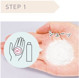 噴射された泡を手で軽く押すと、コットン状に変化します。