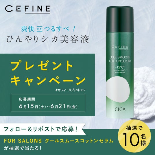 6/15(土)~6/21(金)までの期間中、セフィーヌ公式SNS限定「プレゼントキャンペーン」を開催します。サロン専売ブランド「CEFINE FOR SALONS」から6/6(木)に新発売の